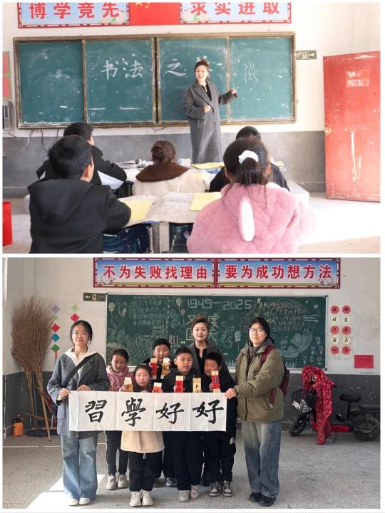 活动在夏邑县韩道口镇前厂小学拉开帷幕。田田老师与孩子们齐聚一堂,她时而挥毫泼墨,为同学们进行生动示范;时而俯身细致讲解,与孩子们亲切交流用笔要领。孩子们认真聆听,在纸上留下虽显稚嫩却专注的笔迹。活动现场墨香氤氲,师生在温馨互动中共同感受书法艺术的魅力,体会笔墨之间的雅趣与韵味。