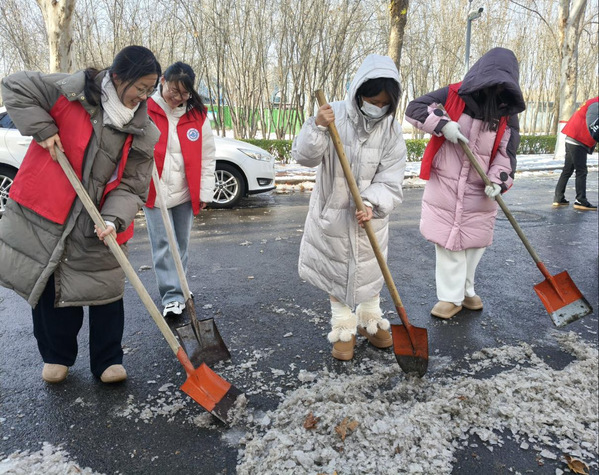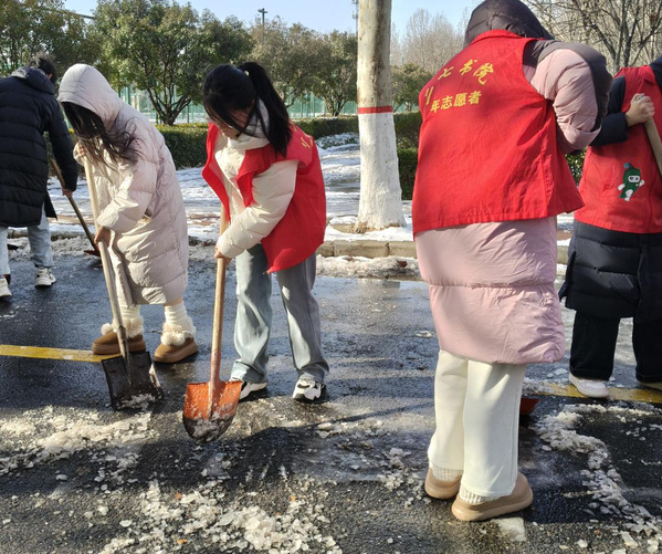 12月13日,一场大雪为校园带来了冬日的美景,也给师生的出行安全带来了不便。为了及时清除积雪,保障校园道路畅通,二七书院迅速组织师生,在书院周边开展除雪保畅志愿服务活动。