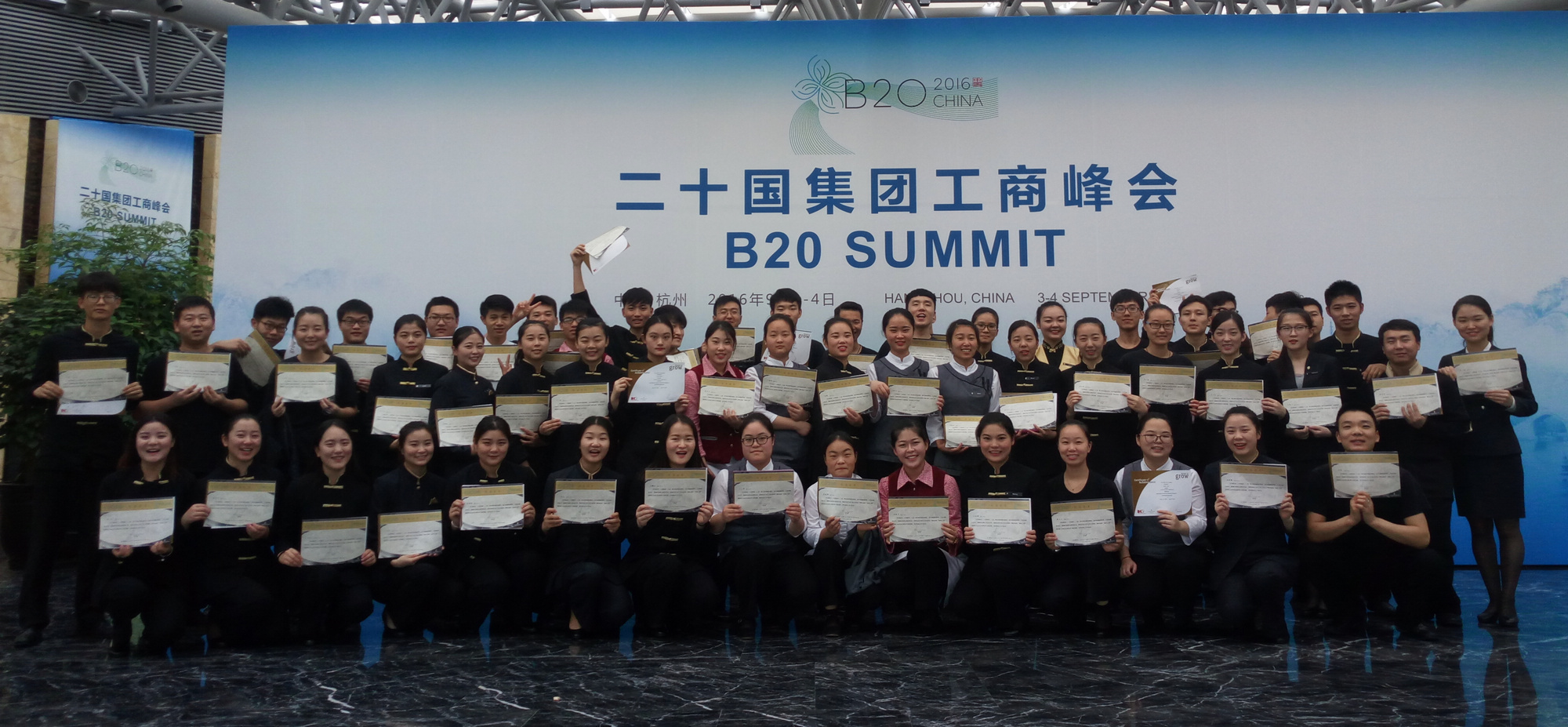 9月8日,我校收到了杭州洲际酒店(杭州国际会议中心)总经理Frankson Lee先生发来的感谢信,感谢我校旅游商贸系2015级酒店管理专业57名学生圆满完成B20/G20服务工作,并对我校办学水平给予了高度评价,对我校给予酒店的大力支持表示深深的感谢。