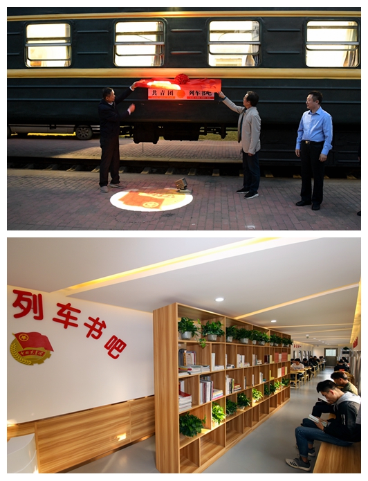10月23日,共青团列车书吧举行揭牌仪式,列车书吧是学校2018年校园文化建设的重点项目,也是学校深化共青团改革的重要举措。将火车改造为书吧,彰显了学校的铁路行业特色,形成特色鲜明的校园文化;依托书吧,开展党团主题活动、理论研讨,加强思想引领,成为大学生思想教育的创新平台和重要阵地。《中国日报》《中国青年报》等媒体对我校共青团书吧进行了相关报道。