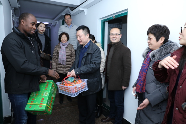 2月4日,农历己亥年除夕,党委书记苏东民、校长孔凡士、副校长董黎生专程看望慰问坚守工作岗位的一线值班人员和南非公派留学生,向他们致以诚挚的问候和新春的祝福,并送上节日慰问品。