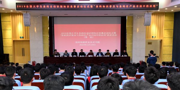 3月19日,全国大学生条码自动识别知识竞赛启动仪式暨“条码知识普及与条码在产品召回中的应用”巡讲活动在我校举行。中国物品编码中心副主任赵京、河南省标准化研究院院长葛伟三、我校校长孔凡士、副校长倪居等出席启动仪式,教务处、运输管理学院相关负责人以及物流管理和市场营销专业师生参加了活动。
