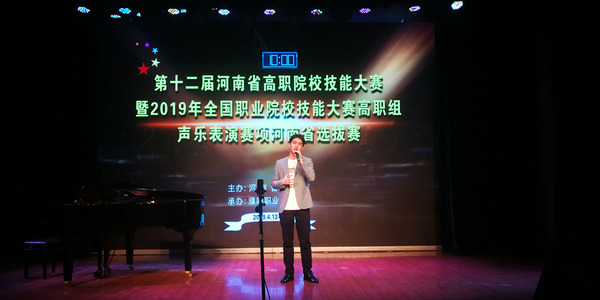 4月13日至14日,第十二届河南省高职院校技能大赛暨2019 年全国职业院校技能大赛高职组艺术专业技能(声乐表演)河南省选拔赛在濮阳职业技术学院举行,来自全省高职院校的28支队伍参加了本次比赛。我校裴娜老师带队,刘奕、邹联丰老师担任指导教师组织学生参赛。经过紧张激烈的角逐,我校音乐表演16A1班马昊同学最终取得第五名佳绩。