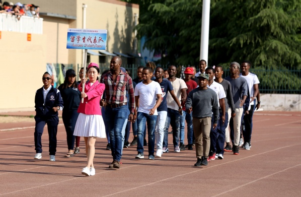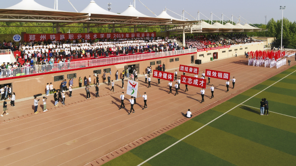 国旗护卫队身姿矫健,气宇轩昂;校旗队精神抖擞,舞动青春;会徽队三色装点,动感张力;教工方队意气风发,整齐划一;各学院方队满腔热忱、口号响亮。军士后学生方阵训练有素,英姿飒爽,践行着退伍不退色、男儿当自强的英勇气概;22名南非留学生阳光向上,活力四射,齐声高喊“我爱中国!”,彰显着我校国际化办学特色。迎风招展的红旗、振奋人心的标语、炫彩绽放的花束,体现了学校跨越式发展的良好态势,展现出铁院人崇德尚能、知行合一的精神追求。