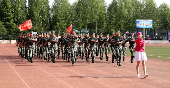伴随着激昂的《运动员进行曲》,国旗、校旗、会徽、标语、红旗、花束、军士后、留学生、教工代表队9个特色方阵和13支学院方阵队伍依次步入会场,他们昂首挺胸、步履铿锵。