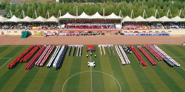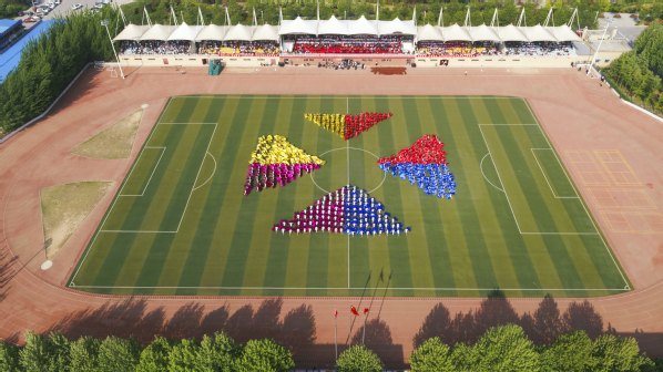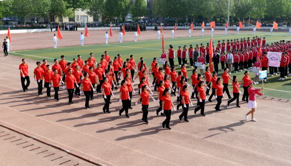 开幕式后,大型团体操接续表演。爱国基调主旋律嘹亮唱响在运动会场上,500名学生身着绚彩服装,挥舞彩绸,姿态万千,尽情享受运动魅力,尽情释放青春活力,为广大师生送上了震撼的视觉盛宴。