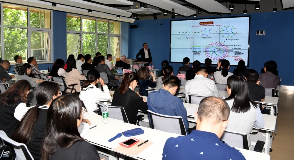 9日下午,Majoral院士开展了主题为“Phosphorus dendrimers: Design and applications”的讲座。讲座开始前,校长孔凡士向来访专家简要介绍了学校的发展概况、国际合作等成就,他表示对院士团队与学校的深化合作充满了期望。我校医药科技创新团队、铁路食品安全管理科技创新团队以及药学院中青年骨干教师、部分学生参加讲座,参加讲座的还有郑州大学药学院赵文教授,化学院颜振宁、牛云垠教授以及中国科学院动物研究所张翰林博士等知名专家。