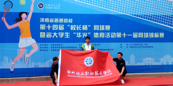 5月13日至19日,河南省第十一届大学生网球锦标赛在河南科技大学举行。经过激烈角逐,由我校张一民、杨鹏泷、马之岩三位同学组成的学生男子网球队在徐乐老师的带领下,顽强拼搏,连战连胜,以全胜战绩获得高职高专组男子团体冠军。在单打比赛中,张一民同学连克对手获高职高专组男子单打冠军。