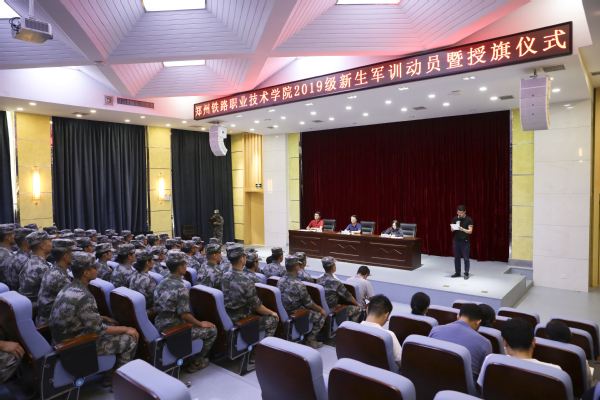 9月9日下午,我校2019级新生军训动员暨授旗仪式在学校第二报告厅举行。副校长倪居出席动员会,学生工作部(学生处、人民武装部)负责人、各学院学生工作负责人、学工办主任及新生辅导员参加了动员会。会议由学生工作部(学生处、人民武装部)部长马荣华主持。