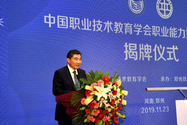 河南省教育厅党组成员、副厅长陈垠亭在致辞中指出,河南省委、省政府高度重视职业教育工作,今年4月,省委书记王国生专程到郑州铁路职业职业技术学院调研并召开职业教育工作座谈会,强调要深入学习贯彻习近平总书记关于职业教育的重要指示和党的十九大精神,为河南高质量发展提供更多创新型、技能型、实用型人才。近年来,学校紧紧围绕立德树人根本任务,科学研判新时代、新业态对职业教育的新要求,积极探索学生职业能力重构,打造了技术技能人才培养的“郑州铁院模式”。研究中心落户学校,既是学会对河南省职业教育改革发展的支持,也是郑州铁院以实际行动实施“双高计划”,打好职业教育高质量发展攻坚战的具体实践。研究中心要充分发挥引领示范作用,在重构教育教学、课程体系和人才培养模式研究方面做出积极探索,将职业教育重构能力的新理念、新方法和新模式推广应用于全国职业院校,助力我省乃至全国完善现代职业教育和培训体系,贯彻并落实好全国教育大会精神和《国家职业教育改革实施方案》。