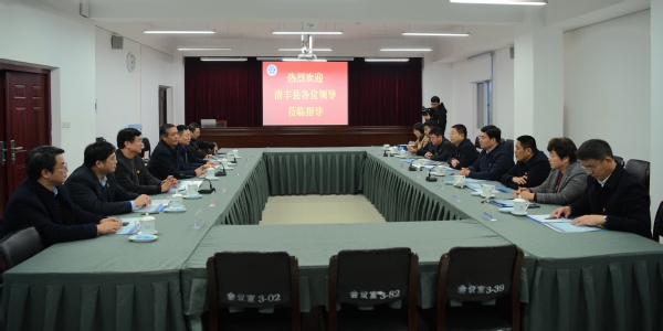12月20日下午,中共清丰县委书记冯向军,县长刘兵,县委副书记潘奇峰,人大主任杨理宏,政协主席戚士杰,县委常委、常务副县长岳春青,县委常委、组织部长郭晓哲,在县委常委、副县长、我校副校长焦宏涛的陪同下,一行8人来我校考察交流,党委书记苏东民、校长孔凡士出席交流活动。
