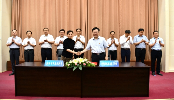 校长孔凡士、新乡市平原示范区管委会主任杨洁代表双方签约