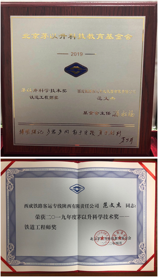近日,由中国工程院、中国铁道学会、中国土木工程学会、北京茅以升科技教育基金会联合主办的“北京茅以升科技教育基金会第29届颁奖大会暨第十届桥梁与隧道工程技术论坛”在北京举行。我校校友,西成铁路客运专线陕西有限责任公司网信办主任、高级工程师范文杰喜获茅以升科学技术奖——铁道工程师奖。