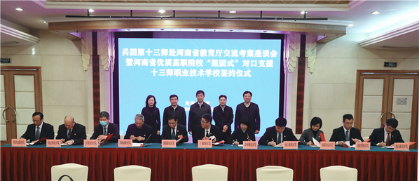 据悉,本次共有郑州铁路职业技术学院、黄河水利职业技术学院等10所河南省优质高职院校承担对口支援任务,一所学校对口支援十三师职业学校一个专业,旨在加快十三师职业技术学校改善办学条件,提升内涵质量,更好地服务兵团经济社会发展。