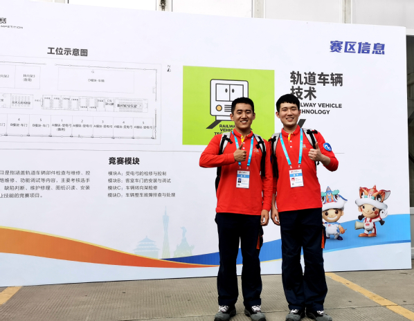 12月13日,全国第一届职业技能大赛在广州落下帷幕。由我校城轨车辆18A1高天、铁道机车18A2敖贵亮两名学生组成的河南省轨道车辆技术赛项代表队,在指导教练赵慧、班希翼两位老师带领下,面对强手、稳扎稳打、坚持不懈,经过三天激烈角逐,从中国中车、地铁公司、高职院校和技工院校等精心遴选的24支省(部)代表队中杀出重围,获得轨道车辆技术赛项全国第五名,并成功获得第46届世界技能大赛中国集训队的入场券,两名学生将在国家教练组的专业指导下进行更加科学、严谨、高效的集中训练。