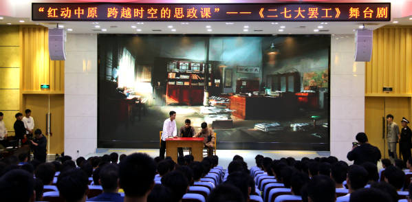 5月11日下午,由省委宣传部、省委高校工委、省教育厅、河南广播电视台联合开展的“红动中原,跨越时空的思政课”——河南省高校学生参演革命电影微视频展播节目组走进我校,现场录制了由我校学生表演的历史情景舞台剧《二七大罢工》,并对我校党委书记许琰进行了专题采访。