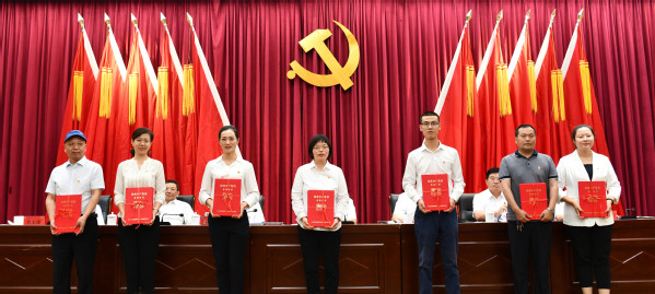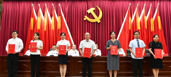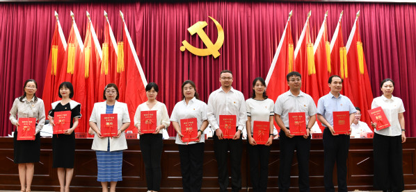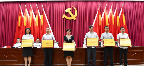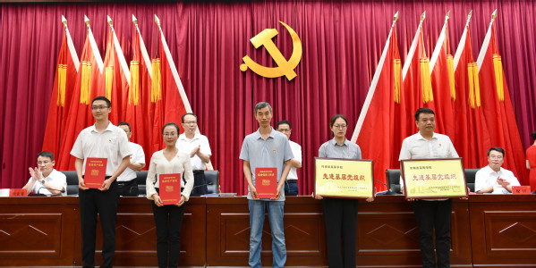 与会领导为学校先进基层党组织颁发奖牌