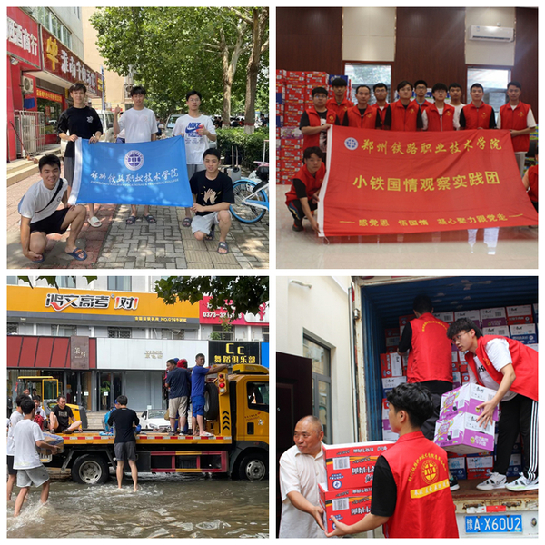 学校各团总支迅速组建青年突击队、志愿者服务队投入防汛救灾一线 。机电工程学院团总支在党总支的安排部署下,组织青年学生成立志愿服务队,对幸福校区教学楼、宿舍楼进行清扫。暴雨来临时,机车车辆学院团总支暑期社会实践队正在新密市白寨镇进行“三下乡”活动,面对洪水灾害,暑期社会实践队积极响应号召,配合白寨镇政府进行人员排查、灾区受损统计等工作。在河南师范大学参加“第七届互联网+创新创业大赛”的我校参赛师生,被突如其来的大雨滞留在新乡,指导老师邰葆清带领学生为抗灾救援队购买食品、饮用水等,组织团队成员开展线下线上募捐,先后向新乡市牧野区捐助现金5000元,获得良好的社会反响。