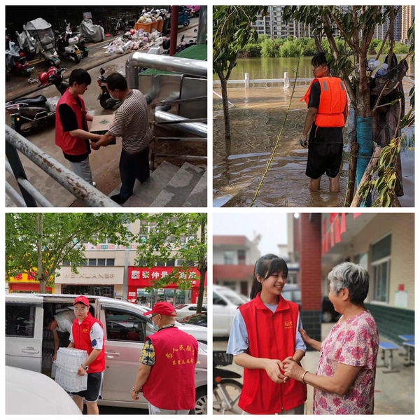 在防汛形势异常严峻之时,我校广大团员青年积极响应上级团组织号召,就近就便向党、团组织报到,踊跃投身各地抢险救援工作,用“青春堤坝”筑牢起防汛抗洪的钢铁长城,以实际行动诠释了当代青年的责任与担当。河南省青马班学员、校学生会成员邢振东、贠铖祺正在河南省青马班进行培训,在团省委的组织下前往巩义市米河镇协助当地志愿者搬运物资,在受灾安置点帮助老人和儿童。校学生会主席团成员管启萌报名参加了京广路办事处冯春社区的防汛志愿者,在街道清理淤泥,帮助社区学校清理地面楼梯,搬运救灾物资。校学生会工作人员唐永琦,在汛情严重时,加入新乡市抗洪救灾志愿队,先是跟随救援队搜救转移群众,又到牧野湖搬沙袋进行防洪工作,在漫到胸膛的水里,连续6小时接送沙包,身体力行地践行了“不怕苦、不怕累,连续作战”的志愿服务精神。