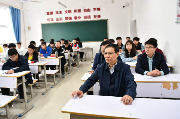 新学期线下上课第一天,学校党委书记许琰深入教学楼,就教师上课、学生到课、课堂教学秩序及教学运行等情况进行了全面检查,并且深入课堂进行随机听课。许琰对开学前教育教学、后勤保障、安全保卫等各项准备工作给予了充分肯定,同时要求各部门坚决扛稳政治责任,强化责任担当,充分考虑我校多校区办学实际,统筹处理好疫情防控与教育教学的关系,确保我校新学期学生顺利安全返校、恢复线下教学活动。