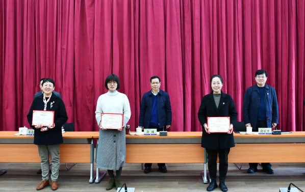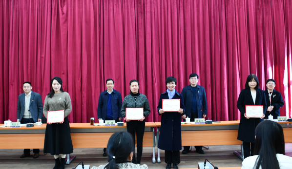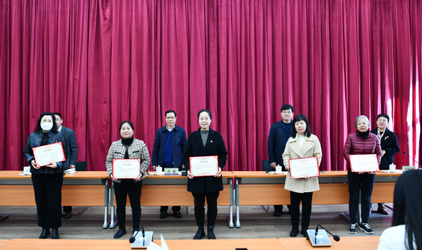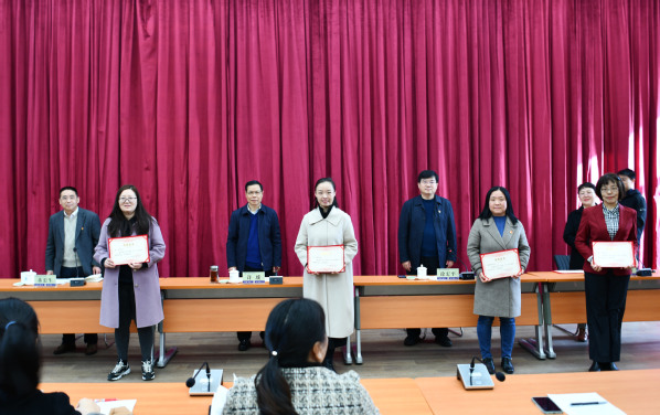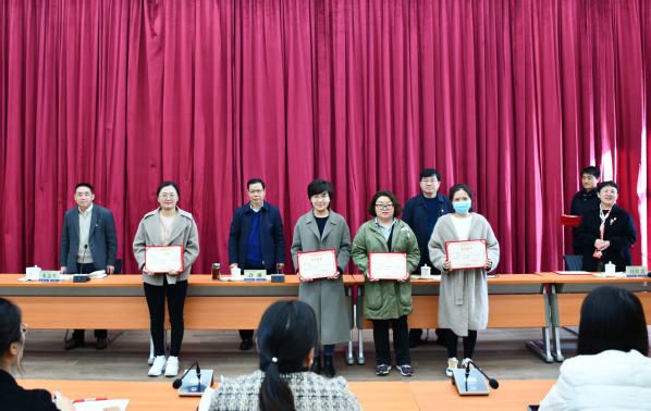 校领导为受表彰女教职工颁发证书