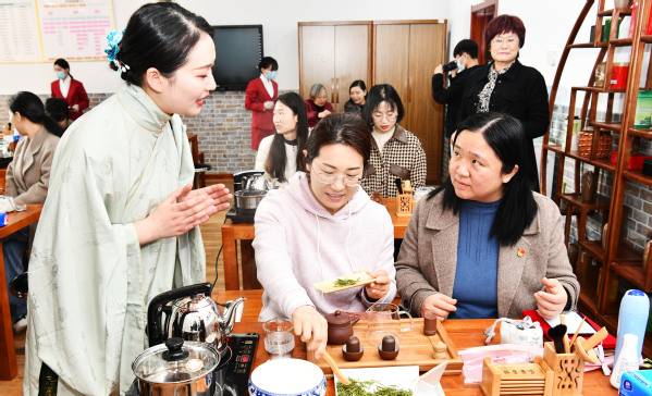阳春三月品香茗。在茶艺活动环节,现场气氛典雅而又热烈。党委书记许琰,党委副书记、工会主席徐宏平为现场女教职工献花,送上节日的祝福和问候。专业老师讲解了六大茶类名优代表茶叶鉴赏、宋代点茶茶具及茶艺知识。伴随着悠扬的琴声,女职工现场进行玻璃杯、紫砂壶茶艺实践。在满室春茶的清香中,女教职工们共享静谧时光,充分体验春茶之美,感受茶艺的魅力。