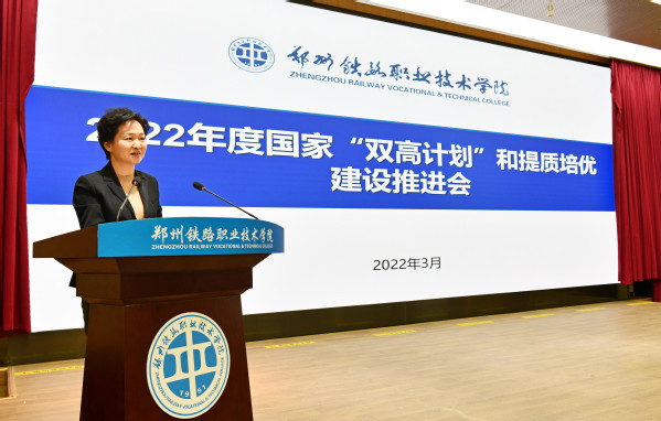 3月17日下午,我校在第一报告厅召开2022年度国家“双高计划”和提质培优建设推进会。校长马玉霞出席会议并讲话,副校长倪居、董媛、李福胜、胡殿宇出席会议。“双高”建设项目实施工作领导小组全体成员及各工作专班责任人、提质培优各任务(项目)牵头单位负责人、各教学单位负责人参加会议。