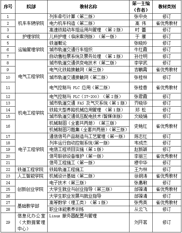 近日,根据河南省教育厅办公室《关于公布“十四五”首批职业教育河南省规划教材建设名单的通知》(教办职成[2022]70号),我校29部教材获批“十四五”首批职业教育河南省规划教材建设项目,其中8部教材被认定为省优秀教材。河南省“十四五”规划教材建设是省教育厅深入贯彻党的十九大精神和全国教育大会精神,落实党中央、国务院关于教材建设的决策部署和《国家职业教育改革实施方案》有关要求,深化职业教育“三教”改革的重要举措。
