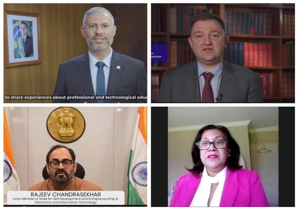 中国教育部副部长田学军、巴西教育部部长戈多伊、俄罗斯教育部第一副部长布加耶夫、印度技能发展与创业部国务部长钱德拉塞卡、南非高教与科创部部长恩齐曼迪以视频或贺信形式致辞。田学军副部长在致辞中指出,在五国的共同努力下,金砖国家职业教育联盟正式成立,这对于促进五国职业教育改革发展、打造对话和信息平台、推动职业教育合作走深走实具有重要意义,将为共同应对教育领域挑战、助推各国经济转型和产业升级、共创全球发展新时代作出积极贡献。