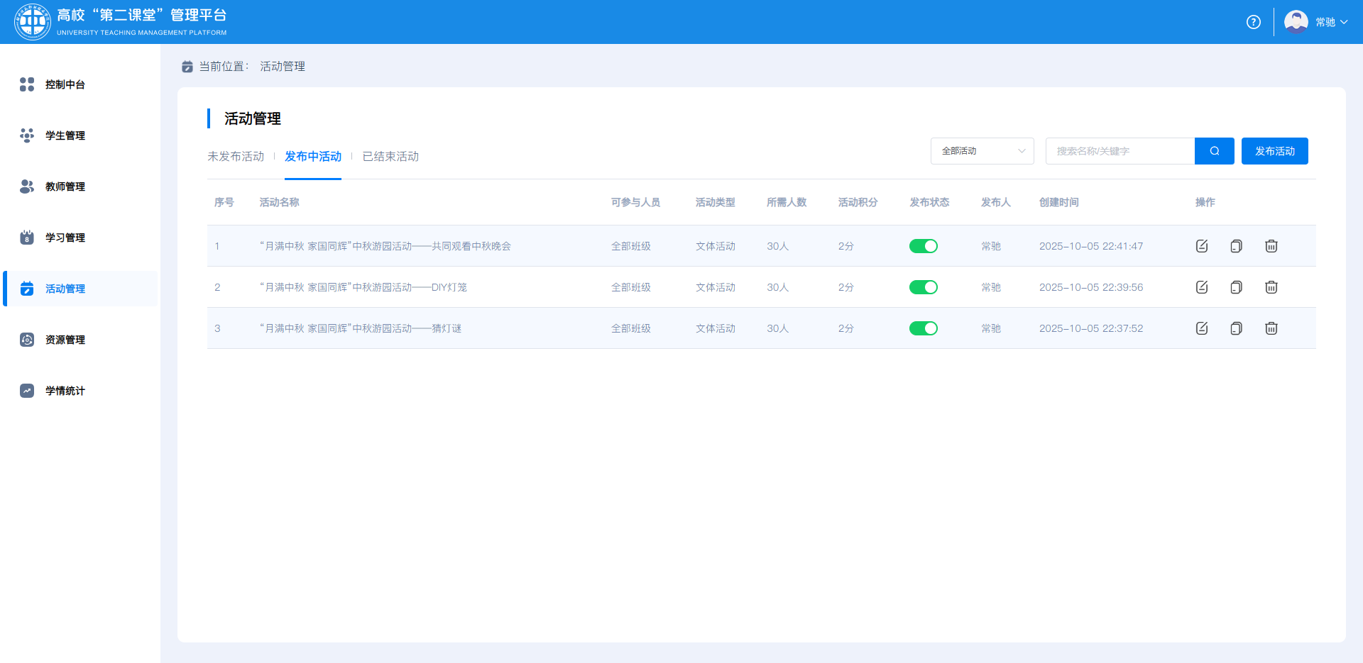 校团委提前部署,确立了“传统与创新结合、文化与趣味并举”的总体思路。活动主题“月满中秋,家国同辉”巧妙地将中秋“小家”的团圆与国庆“大家”的繁荣融为一体,旨在引导广大青年学子在感受传统文化魅力的同时,厚植家国情怀,激发爱国热情。通过校团委微信公众号推送活动预告,并与二级书院分团委同步推送,同时,将活动内容通过“第二课堂”平台发送至每位学生,学生可在线报名,达到活动前期宣传的效果。