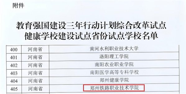 近日,教育部发布《关于确认教育强国建设三年行动计划综合改革试点健康学校建设试点学校名单的函》,我校成功入选试点学校名单。
