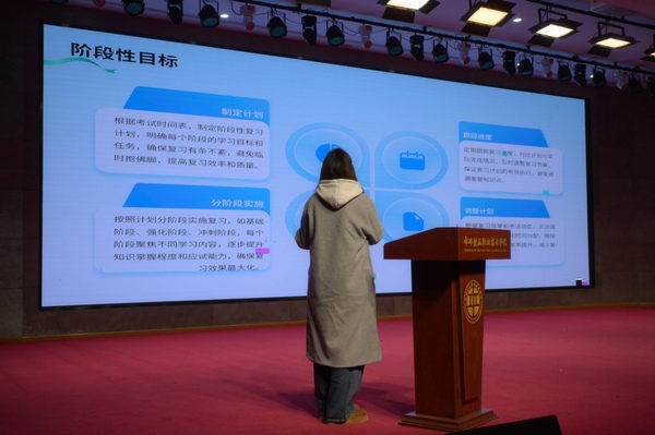 互动问答环节气氛热烈,学生们围绕“如何平衡社团活动与期末复习”“专业课难点突破技巧”“考前心态调适”等问题积极提问。分享嘉宾结合自身经历逐一拆解答疑,提出“时间银行”规划法、“知识点闭环记忆”等实用方案,现场掌声不断。