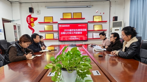 2026年2月5日,艺术学院根据学校文件要求,召开“优企引才”定向访企拓岗促就业行动推进会暨2026届高校毕业生寒假促就业暖心行动工作部署会,全力推动毕业生高质量就业。艺术学院领导班子及成员参加。