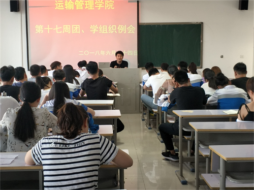 2018年6月24日18时,运输管理学院于7314教室召开第十七周团、学组织例会。运输管理学院学工办主任、团总支书记袁帅出席此次会议,会议由杨思萌主持,团、学组织各部门部长、各班班长以及团支书准时参加。