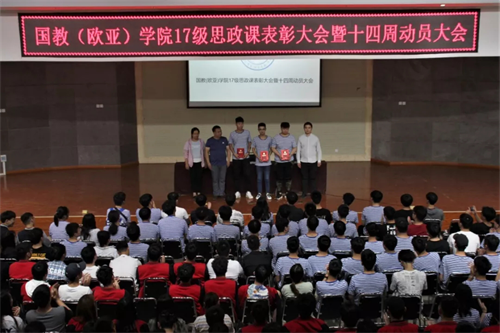 5月24日中午12:10,国际教育(欧亚交通)学院于大学生活动中心开展17级思政课表彰大会暨十四周动员大会。本次动员大会由党总支副书记罗坤、学工办辅导员王宗领、杨慧娜出席,本次会议由辅导员王宗领主持。17、18级学生代表参加。