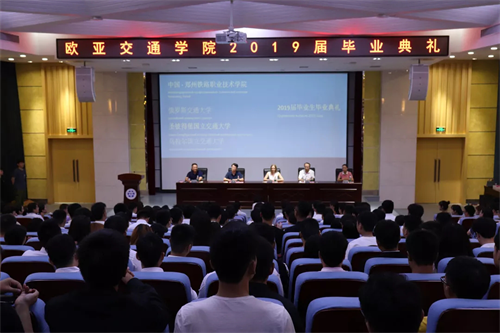 在庄严的国歌声中,欧亚交通学院2019届毕业典礼由此拉开序幕。首先由郑州铁路职业技术学院副校长董黎生先生为毕业典礼致词。