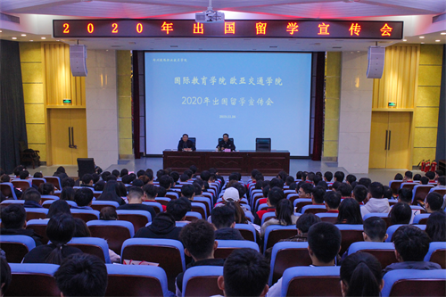 2019年11月26日下午2点,国际教育(欧亚交通)学院“不忘初心,牢记使命”主题报告会暨国际教育(欧亚交通)学院“2020年出国留学宣传会”于新校区7号楼第二报告厅举行。