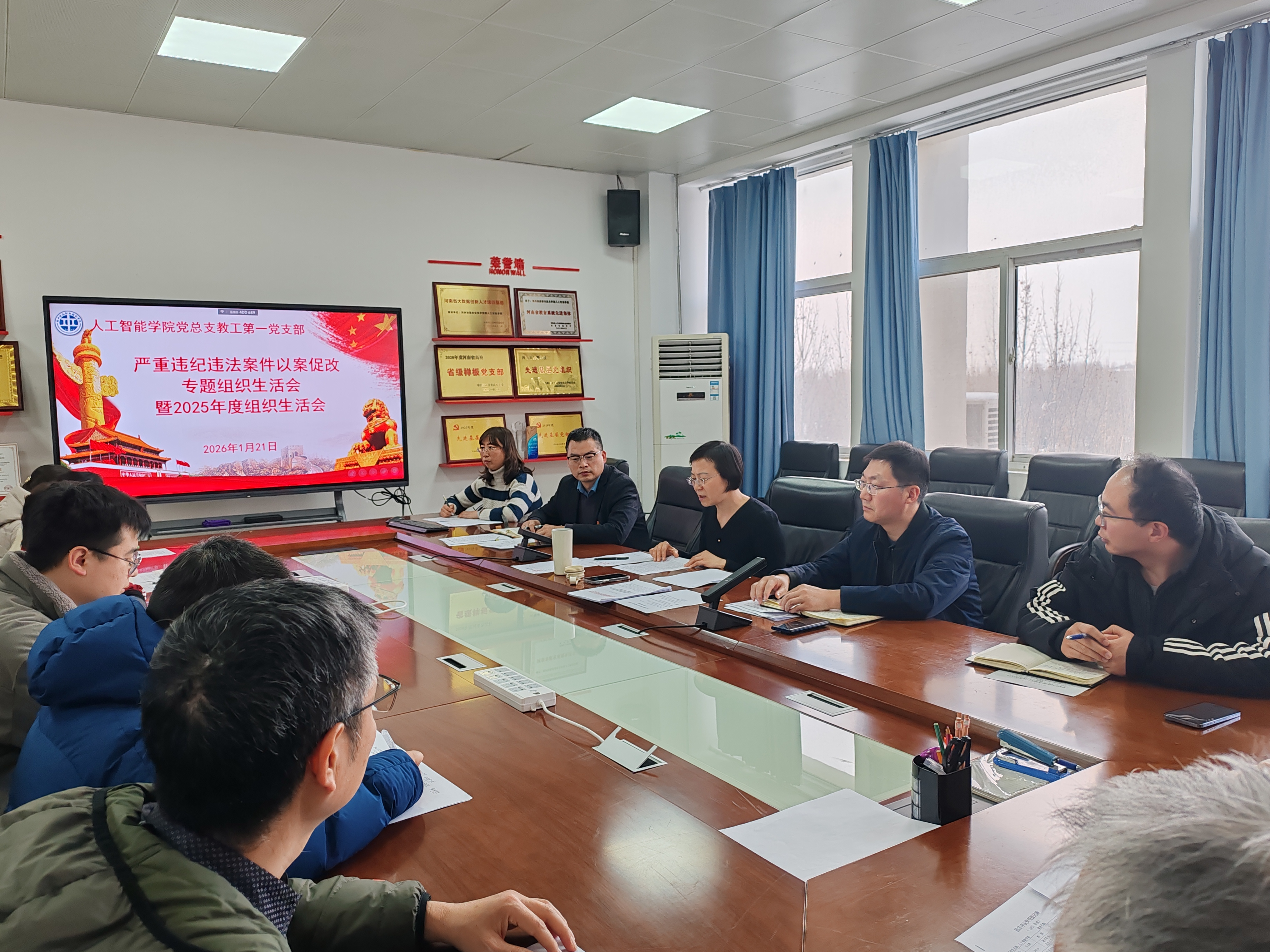 为深入推进全面从严治党,筑牢党员廉洁自律防线,2026年1月21日,人工智能学院教工第一党支部在1413会议室召开严重违纪违法以案促改专题组织生活会暨2025年度组织生活会。学校党委副书记董媛以普通党员身份参会并作指导,党支部全体党员参加会议。