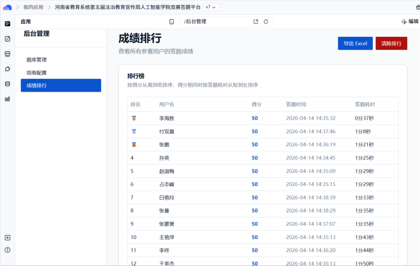 为确保活动有序开展、取得实效,筹备阶段学院高度重视、精心部署,专门成立专项工作小组,明确各环节分工、压实工作责任。依托百度秒哒平台,学院组织骨干专业教师团队加班加点,耗时3天自主开发专属答题平台,筹备期间反复打磨题库、调试平台功能,题库涵盖宪法、教育法、民法典等核心内容,精准贴合法治教育要求,同时创新融入人工智能专业特色,实现专业实践与思想教育双向赋能。