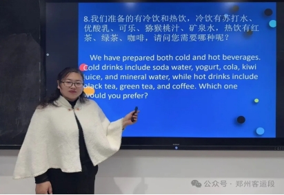 为全面提升客运段高铁乘务人员的外语水平,1月9日,由客运段职工培训科牵头,在郑州五里堡乘务培训中心培训基地开展了一场聚焦乘务场景、内容实用的动车组英语服务用语专项培训。