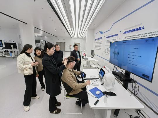 在翔宇医疗负责人的陪同下,学院代表团走进企业综合设备展厅。通过实地观摩与详尽的听取讲解,考察团深入了解了翔宇医疗在康复设备、医疗器械领域的尖端技术实力与自主创新成果。其间,代表团针对行业前沿技术应用及临床实践需求,对相关医疗仪器设备进行了现场体验,就产品研发逻辑与人才技能要求进行了深入学习交流。