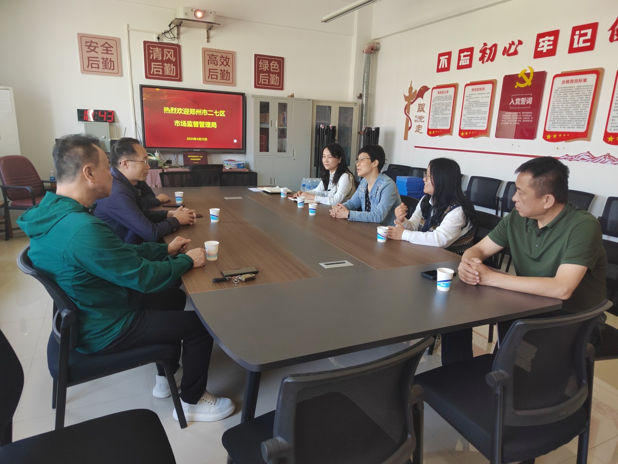 为进一步发挥政府部门与地方高校的资源优势,促进区域经济社会发展,4月23日上午,郑州市二七区市场监督管理局副局长陈向林一行3人来到我校进行交流,副校长董媛、药学院院长张晓霞、后勤服务中心主任路博等参加了交流座谈。