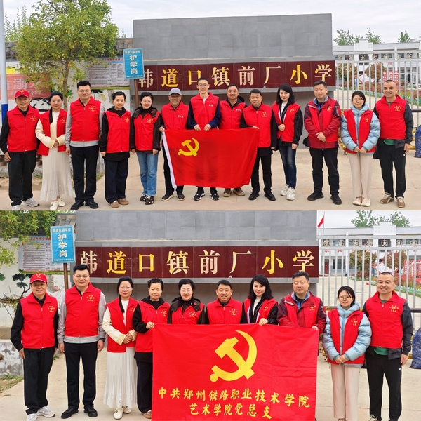 为积极响应乡村振兴战略号召,4月21日,郑州铁路职业技术学院艺术学院联合海燕出版社及我校驻村工作队,在商丘夏邑县韩道口镇前顾厂村小学开展了“党建引领・美育赋能・书润童年”主题党日活动。艺术学院领导班子成员及党员代表、海燕出版社三个党支部代表、我校驻村工作队、韩道口镇镇长、前顾厂村委、村小学校长和老师等参加。