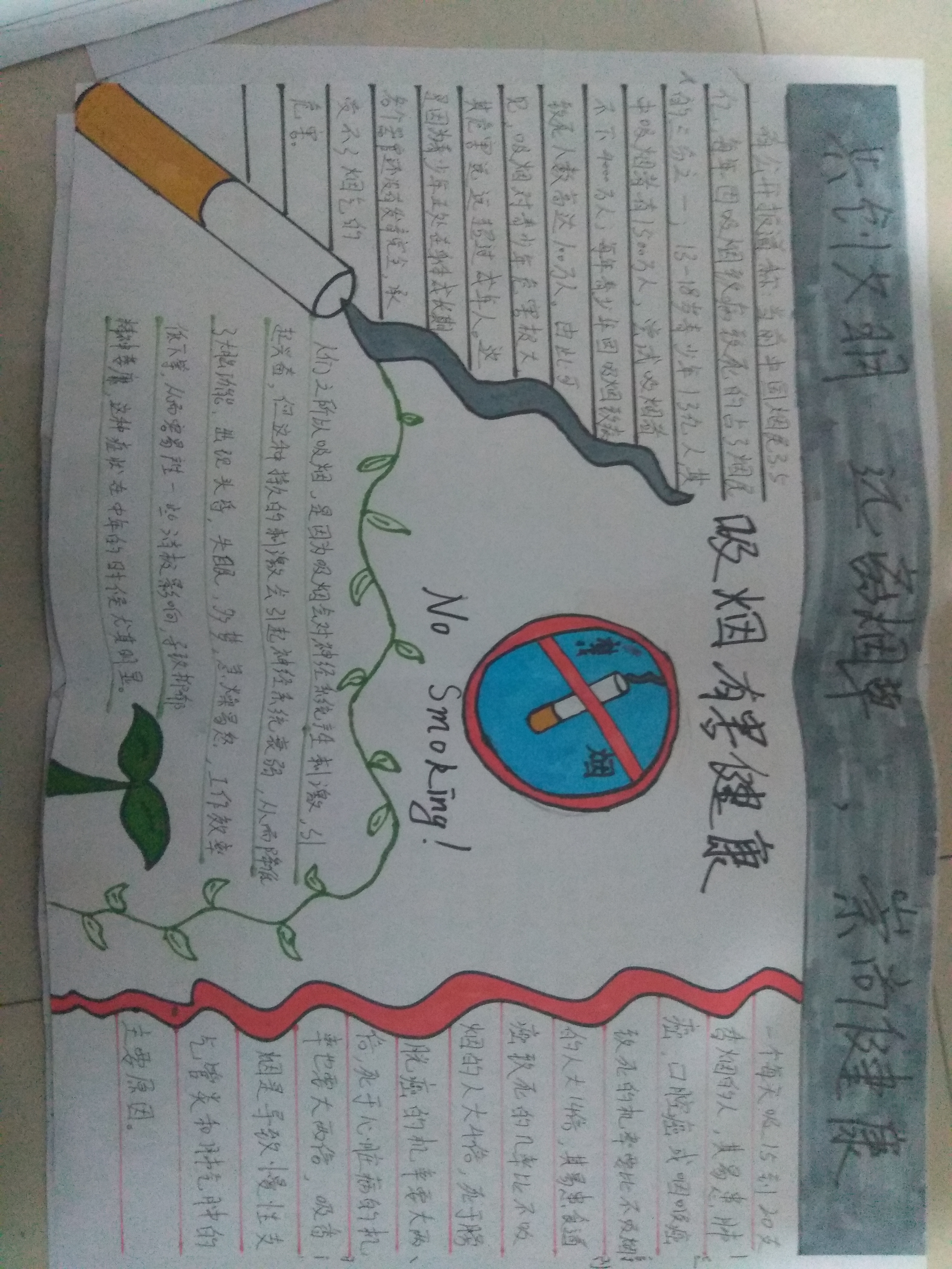 2018 年5月31日是第31个世界无烟日,为呼吁广大学生养成健康的生活习惯和文明意识,自觉遵守公共场合所禁止吸烟的规定,电气工程系开展了征集“共创文明,远离烟草,崇尚健康”为主题的手抄报志愿活动。