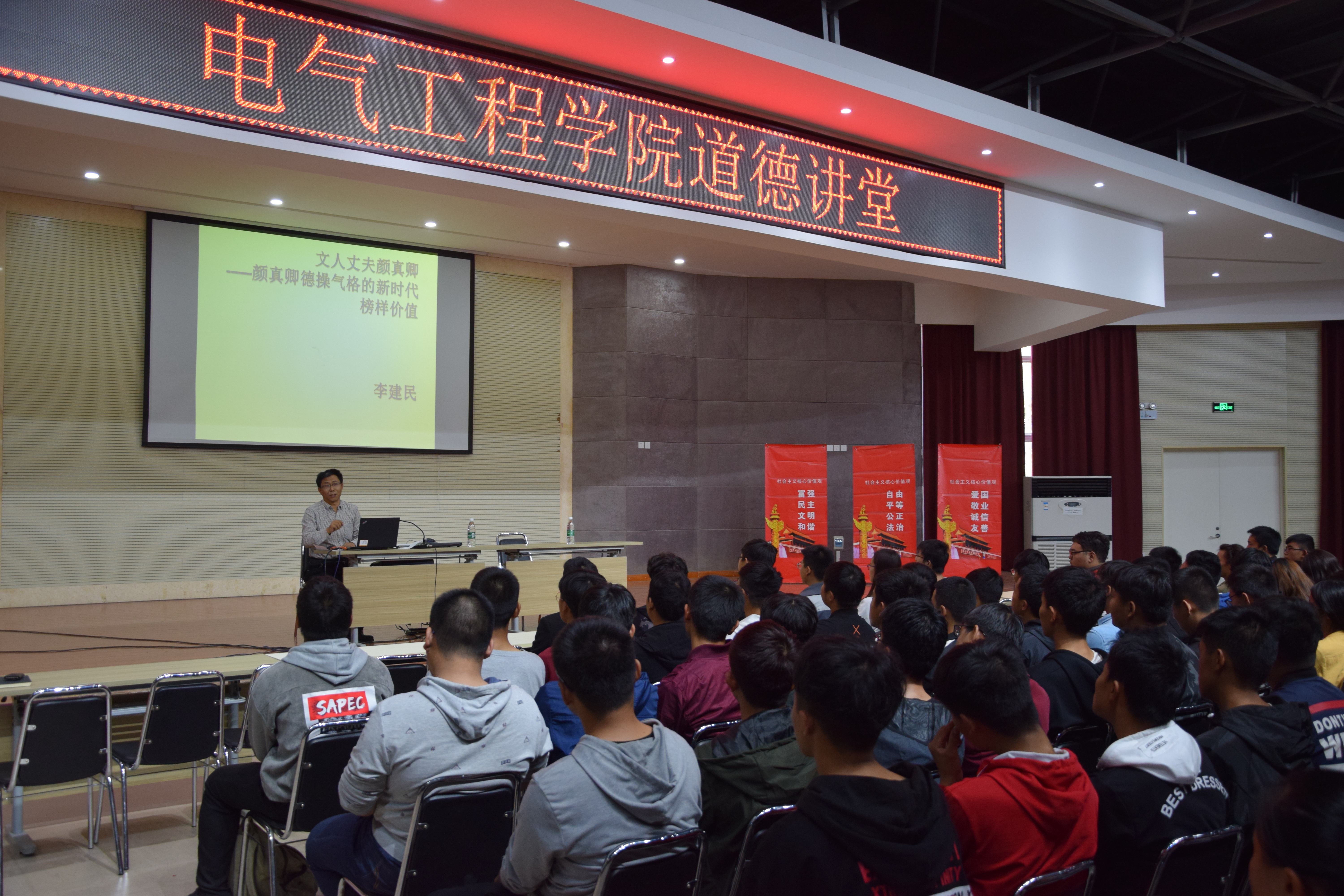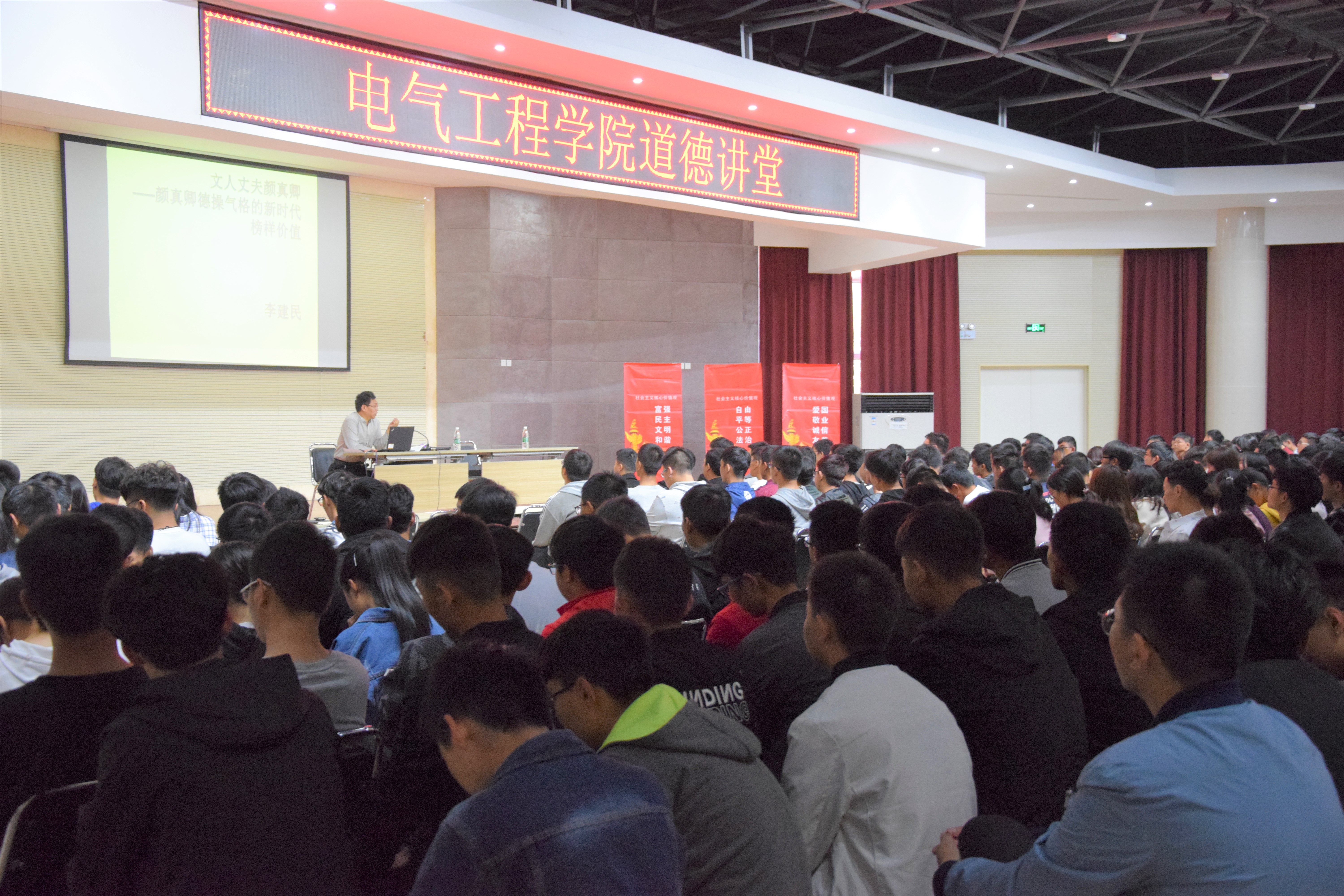为提升同学们的思想道德修养,电气工程学院于10月18日在七号楼积极组织参加道德讲堂讲座,讲座邀请机车车辆学院李建民老师主讲,由团委书记高文天主持。
