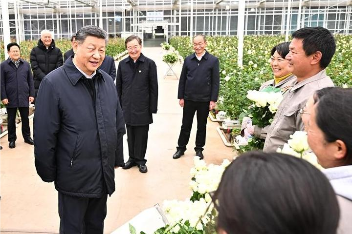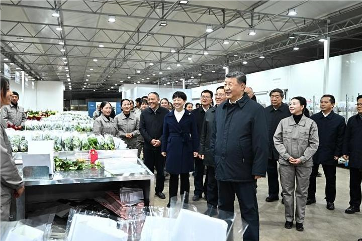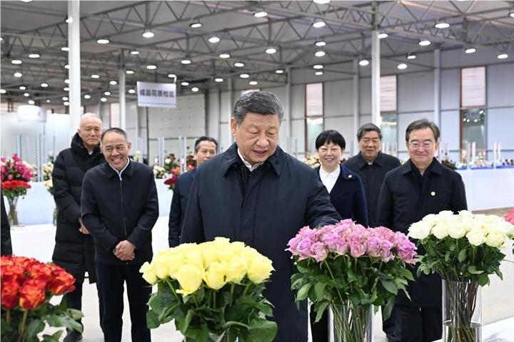 19日下午,习近平来到丽江现代花卉产业园。在展厅,他察看玫瑰、马蹄莲鲜切花品种展示,听取云南花卉产业发展情况介绍。在玫瑰花种植区,他了解智能温室无土栽培技术,同现场村民、技术人员亲切交谈。他还来到玫瑰花分级包装生产线,察看筛选、分级到包装、发货的全流程,对鲜切花通过物流及时外销表示肯定。习近平指出,云南花卉产业前景广阔,要着眼全产业链,从种业端、种植端、市场端不断深耕细作,让这一“美丽产业”成为造福群众的“幸福产业”。