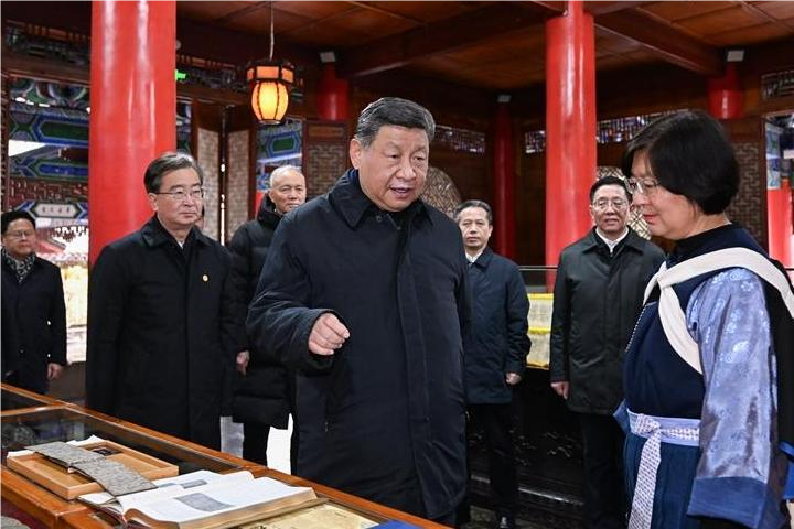 古城内的木氏土司府衙署见证了西南地区各民族交往交流交融的历史。习近平察看木府主要建筑,参观纳西族东巴文化研究成果展示。他强调,要保护利用好木府这样的重要文化地标,保护传承好中华优秀传统文化,引导各族群众自觉铸牢中华民族共同体意识,不断推进中华民族共同体建设。
