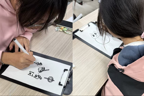 “涂鸦接龙”环节兼具趣味性与教育意义,将活动推向高潮。八支队伍通过接力绘画的形式,共同描绘“非遗”物品。过程中,既有笔触传递间的创意碰撞,也有猜出答案时的默契欣喜。同学们在协作中加深了对传统文化的理解,更在实践中提升了团队沟通与解决问题的能力。