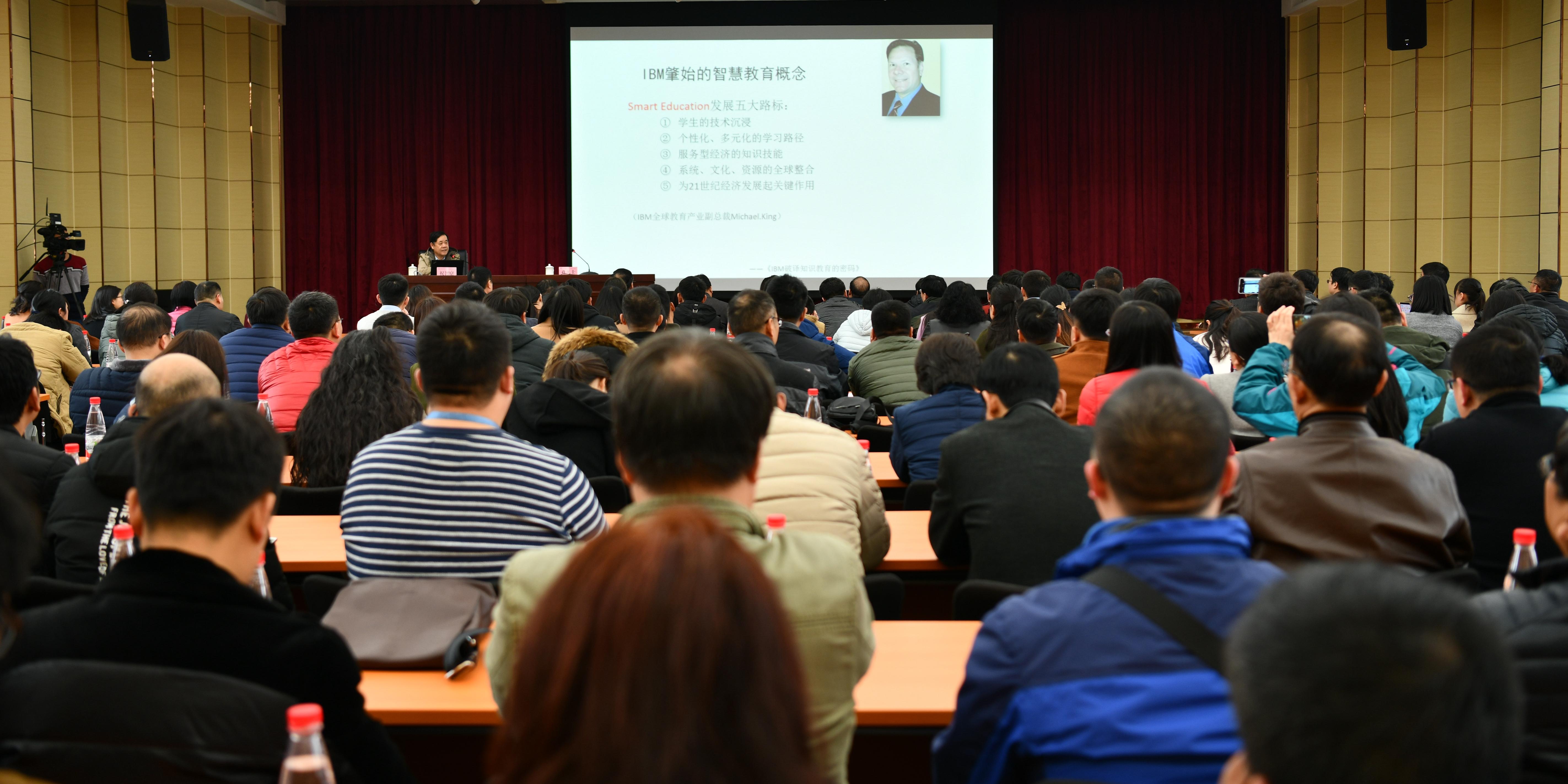 3月19日下午,华东师范大学终身教授、博士生导师祝智庭应邀到我校作了一场题为《智慧教育新发展》的学术报告。河南交通职业技术学院、郑州电力高等专科学校两所兄弟院校以及我校职能处室、各教学单位相关人员共计400余人参加了报告会。报告会由校长孔凡士主持。