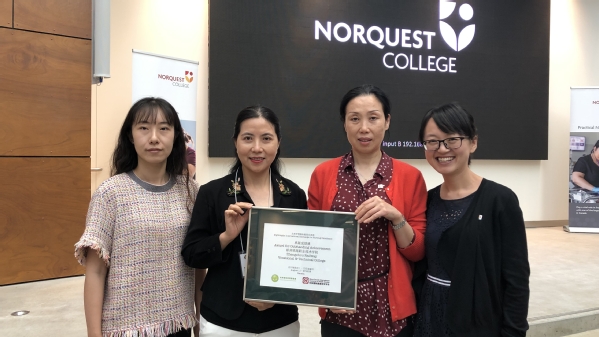 赴加拿大团组由护理学院林爱琴院长带队,全程参与北美教育交流周系列活动。此次交流周活动由光华国际教育联合会、中加国际健康研究学会、中国老年学和老年医学学会共同举办,加拿大圣力嘉学院、诺奎斯特学院具体承办。作为国际赛事专业委员会主任委员单位,林爱琴代表我校在活动开幕式上做了发言,汇报了我校护理教育发展历程、办学优势以及近两年取得的重要成果;3位教师代表全程参与了技术竞赛,并获得卓越成就奖。访问期间,代表团还参观了百年理工学院、北阿尔伯塔理工学院,与诺奎斯特学院负责人商讨了中加护理合作办学项目人才培养方案的细节问题,为秋季新生教学奠定了良好基础。